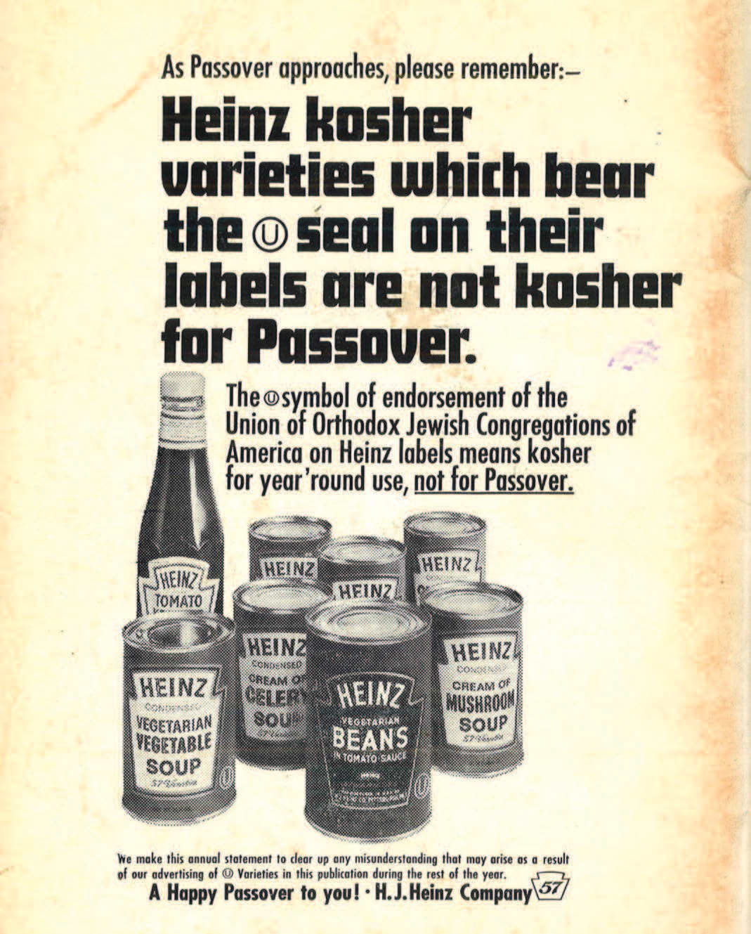 Heinz ad on the back cover of Jewish Life, spring 1965. Jewish Life was the predecessor to Jewish Action.