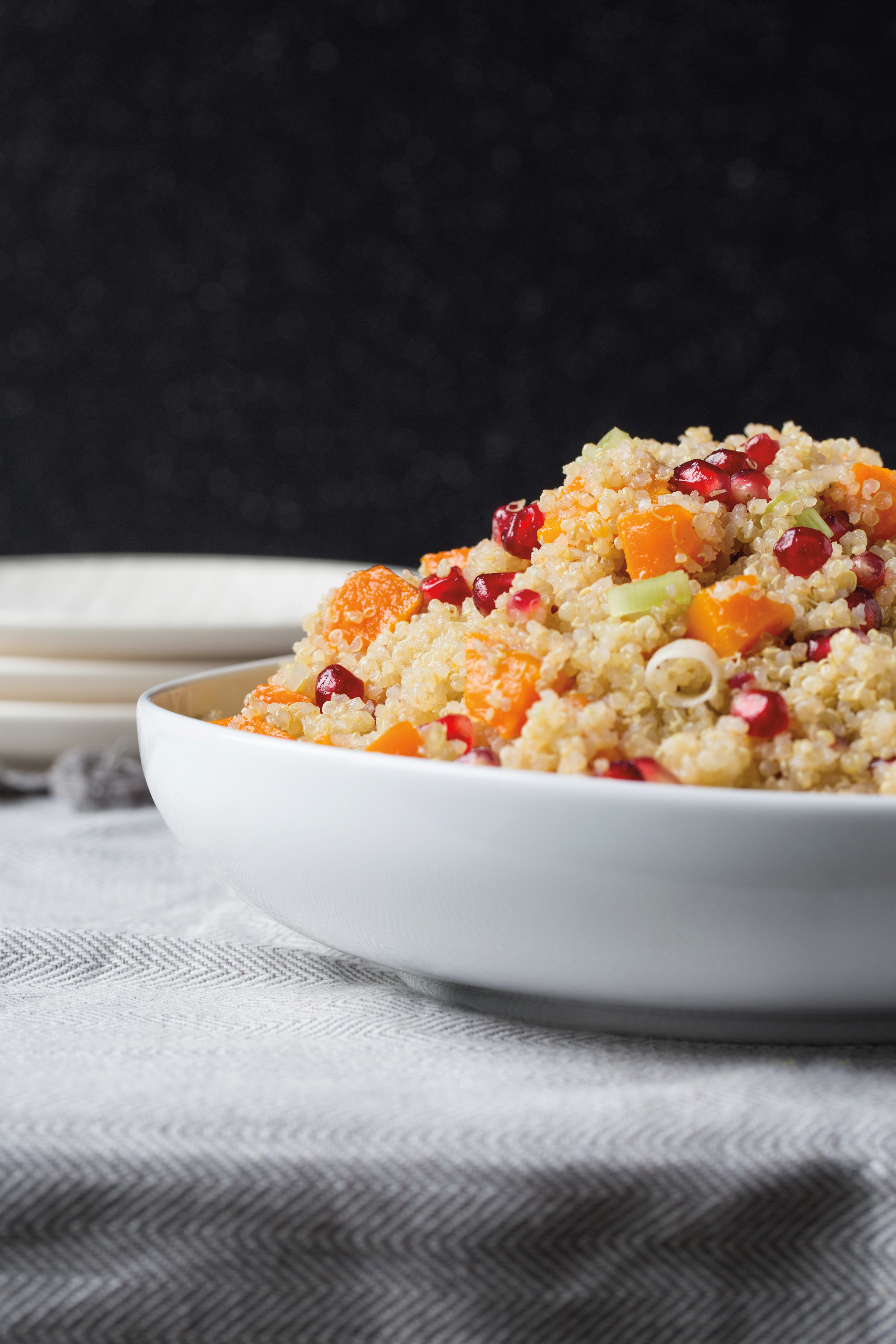 3. Assemble salad: Combine quinoa with prepared butternut squash, scallions and pomegranate seeds.