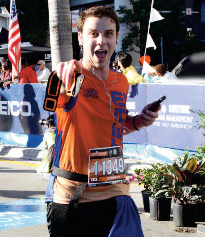 Team Yachad member Brandon Lurie from Los Angeles crossing the finish line at the 2015 Miami Marathon.