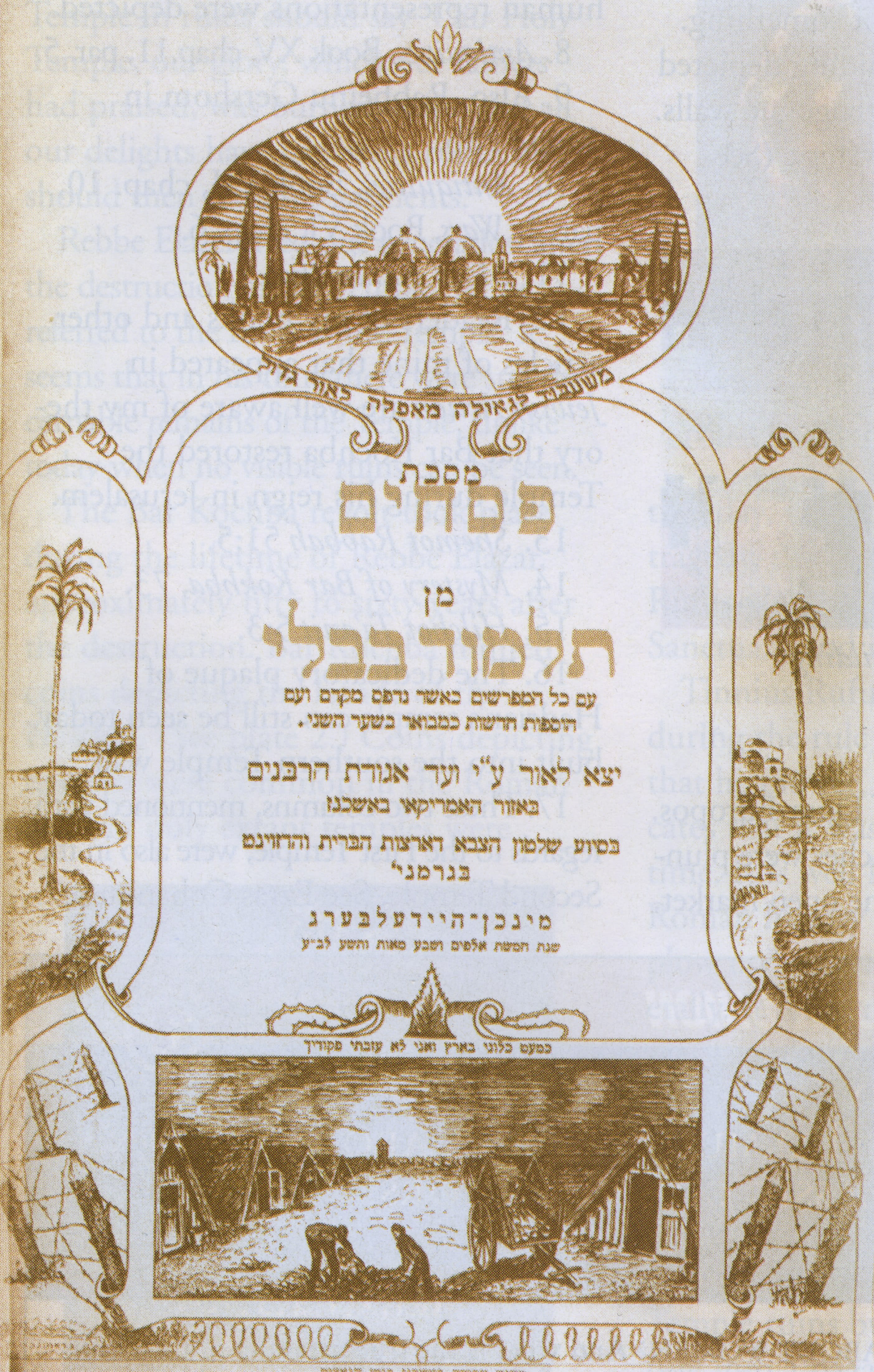 This edition of the Talmud is dedicated to the United States Army. The Army played a major role in the rescue of the Jewish people from total annihilation, and their defeat of Hitler bore the major burden of sustaining the DPs of the Jewish faith. This special edition of the Talmud, published in the very land where, but a short time ago, everything Jewish and of Jewish inspiration was anathema, will remain a symbol of the indestructibility of the Torah. The Jewish DPs will never forget the generous impulses and the unprecedented humanitarianism of the American forces, to whom they owe so much.