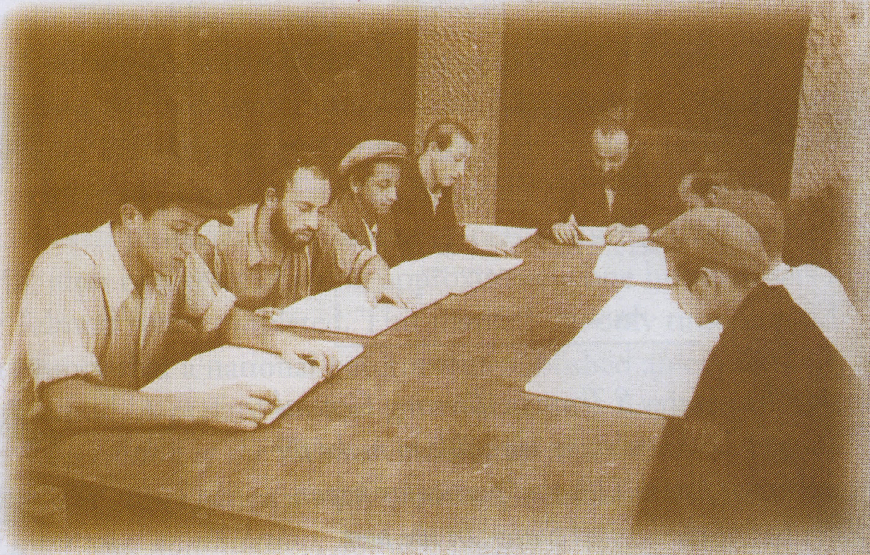 A tradition survives: Lithuanian and Hungarian Holocaust survivors studying Talmud in a Jewish DP camp in Campolecciano, Italy, 1946.