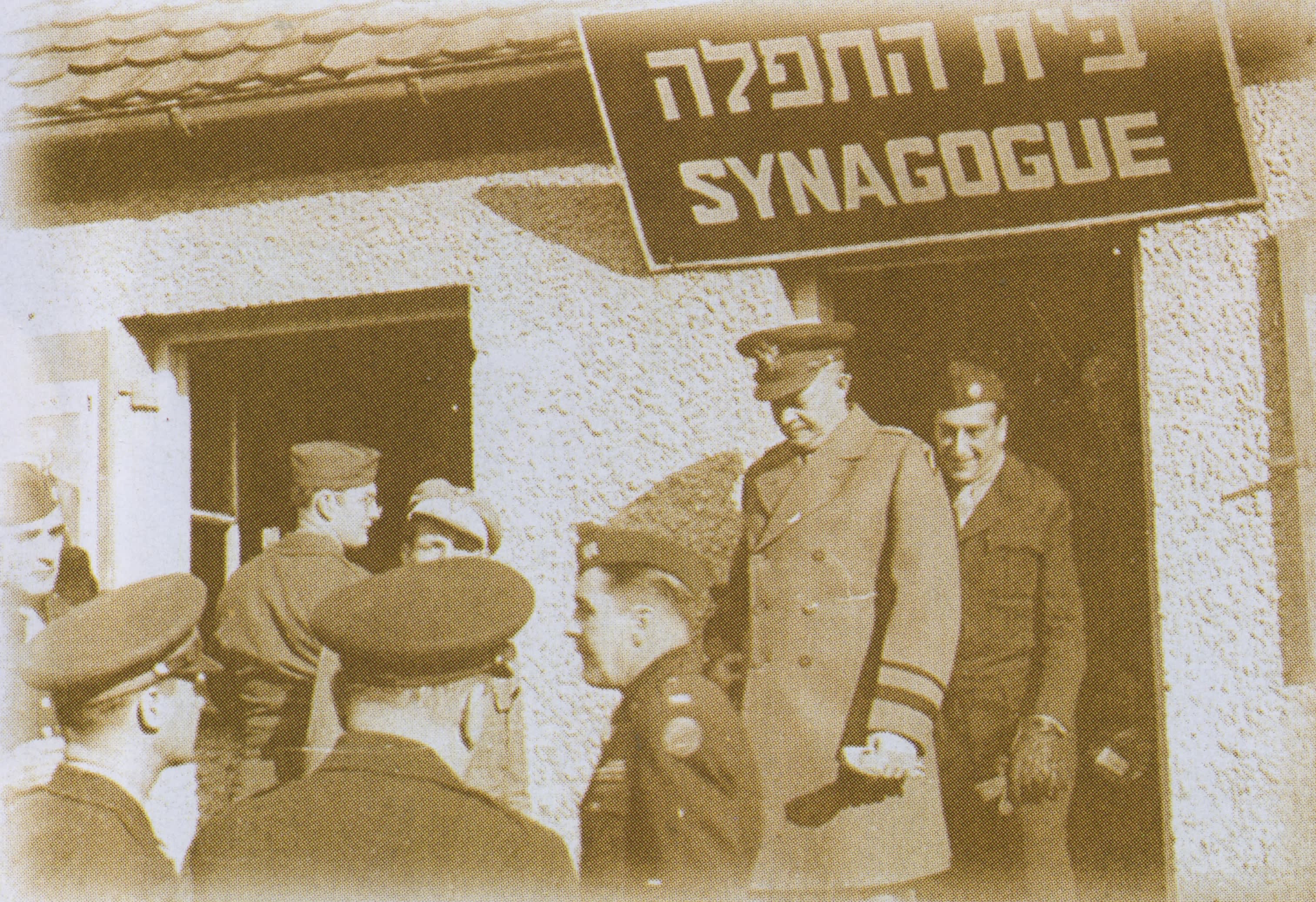Eisenhower inspects the synagogue of Neu Freimann, a DP camp in Germany, shortly after receiving Truman’s instructions.