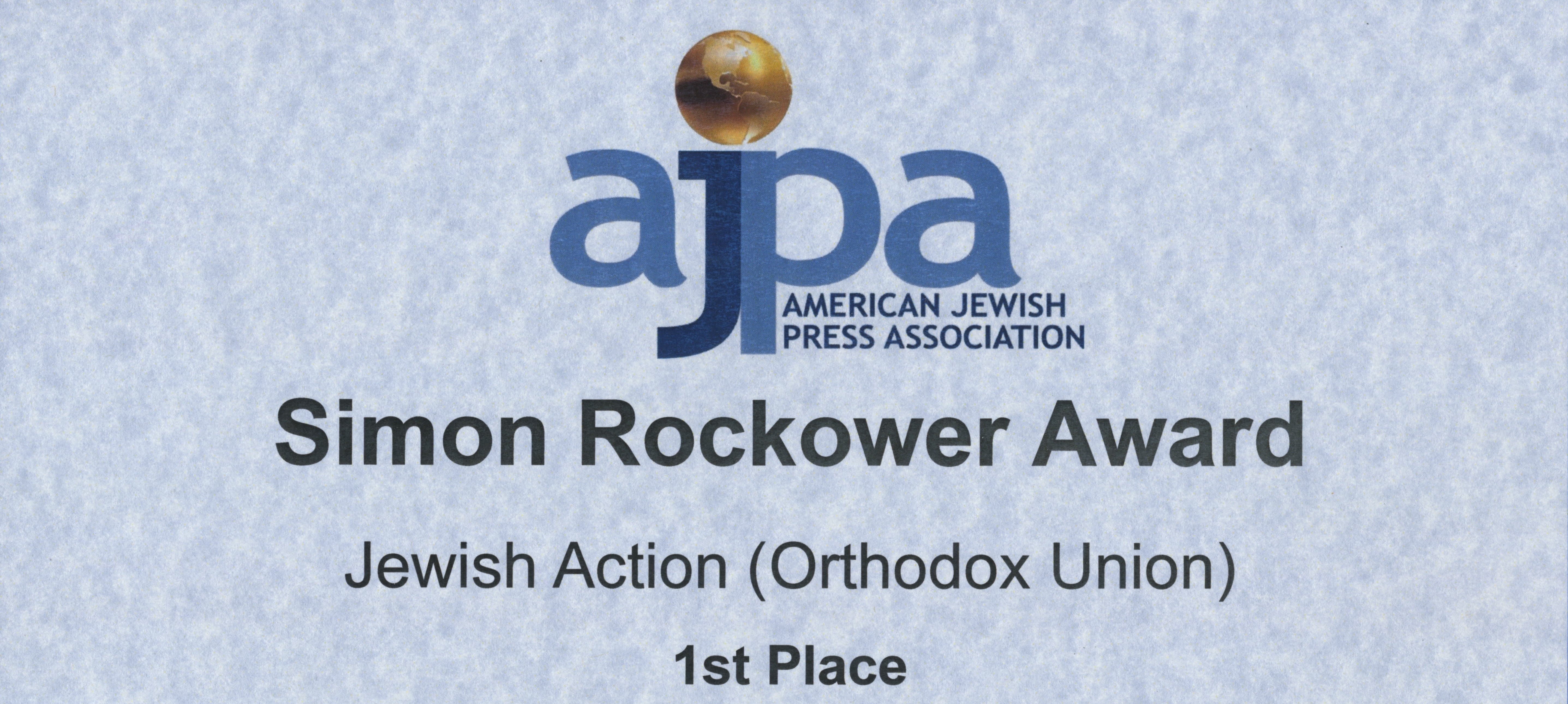 The prestigious awards, referred to as the “Jewish Pulitzers,” are sponsored by the American Jewish Press Association, which holds a journalism competition for leading Jewish magazines and newspapers from across the country. The entries are judged by a panel of judges with expertise in journalism, writing/reporting, editing, graphic design and cartooning in both the Jewish and non-Jewish media. This is the eighth year in which Jewish Action has participated in the Rockower Awards competition, and it has been honored each year.