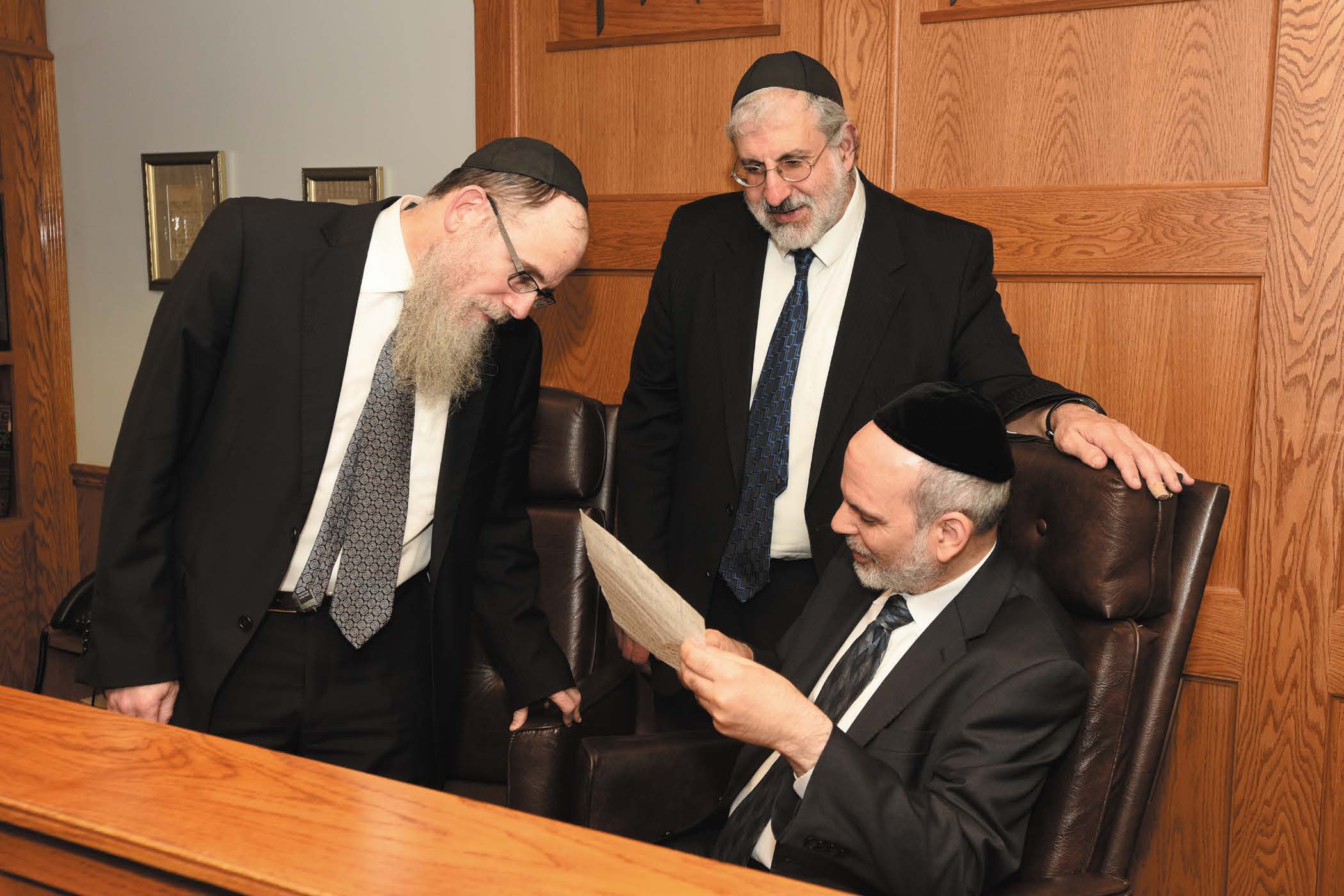 The Chicago Rabbinical Council (CRC) Beit Din oversees conversion with GPS-sponsoring rabbis throughout the Midwest and beyond, in communities including Memphis, Dallas, Kansas City and Denver. Recently, a woman flew in from Hong Kong to complete her geirut. From left: Dayan Rabbi Ephraim Friedman, Dayan Rabbi Daniel J. Raccah and Av Beit Din Rabbi Yona Reiss. Courtesy of the Chicago Rabbinical Council