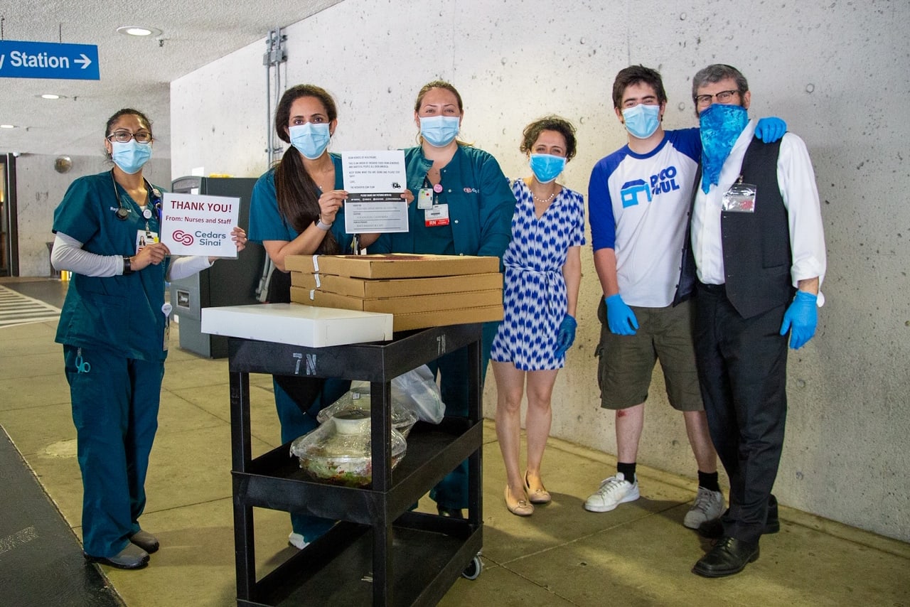 Kosher19 volunteers drop off food to nurses at Cedars Sinai Hospital in Los Angeles, California. Courtesy of Dave Weinberg