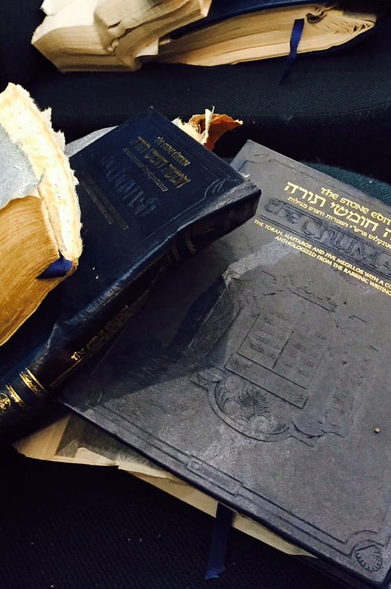 Water-damaged Chumashim at United Orthodox Synagogues of Houston. Photo courtesy of Rabbi Steven Weil