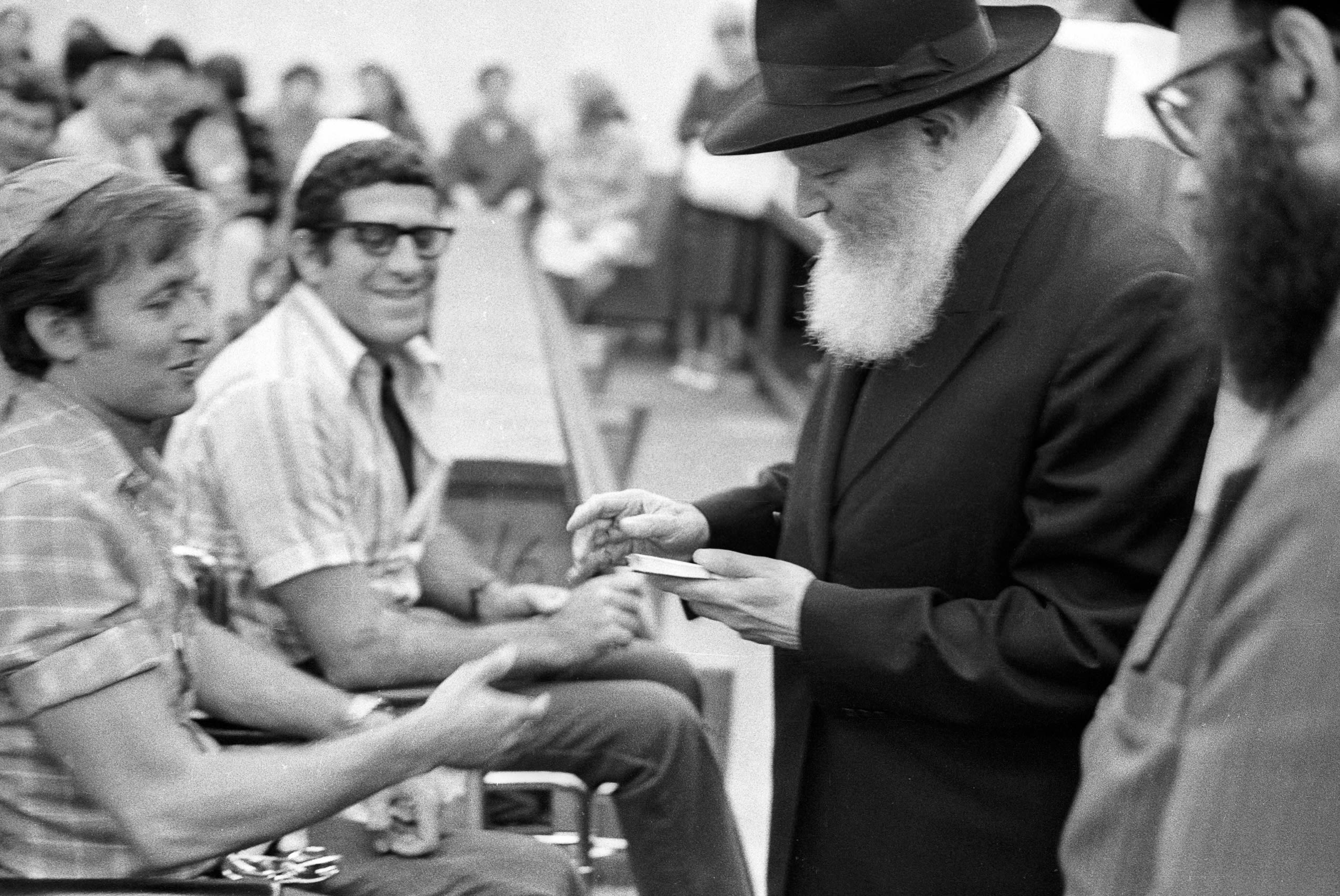 The Rebbe addressing a delegation of the IDF Disabled Veterans Organization, who stopped in New York to visit the Rebbe on their way to the 1976 Paralympics in Toronto, Canada. Courtesy of JEM/Yossi Melamed