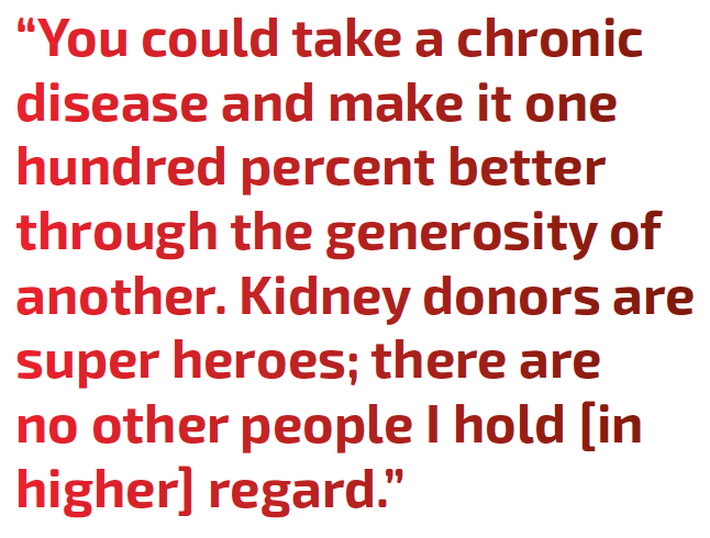 The significant number of living donors in the Jewish community has not gone unnoticed in the medical community. “I am always pleasantly surprised to see how many people come out to the donor drives,” says Dr. David Serur, medical director of kidney and pancreas transplantation at the Rogosin Institute of Nephrology, affiliated with New York-Presbyterian/Weill Cornell, in New York City. “It would be great if this could be replicated around the country in different communities.” After twenty-four years in the field, he’s still awed by the transplant process. “You could take a chronic disease and make it one hundred percent better through the generosity of another. Kidney donors are super heroes; there are no other people I hold [in higher] regard.”