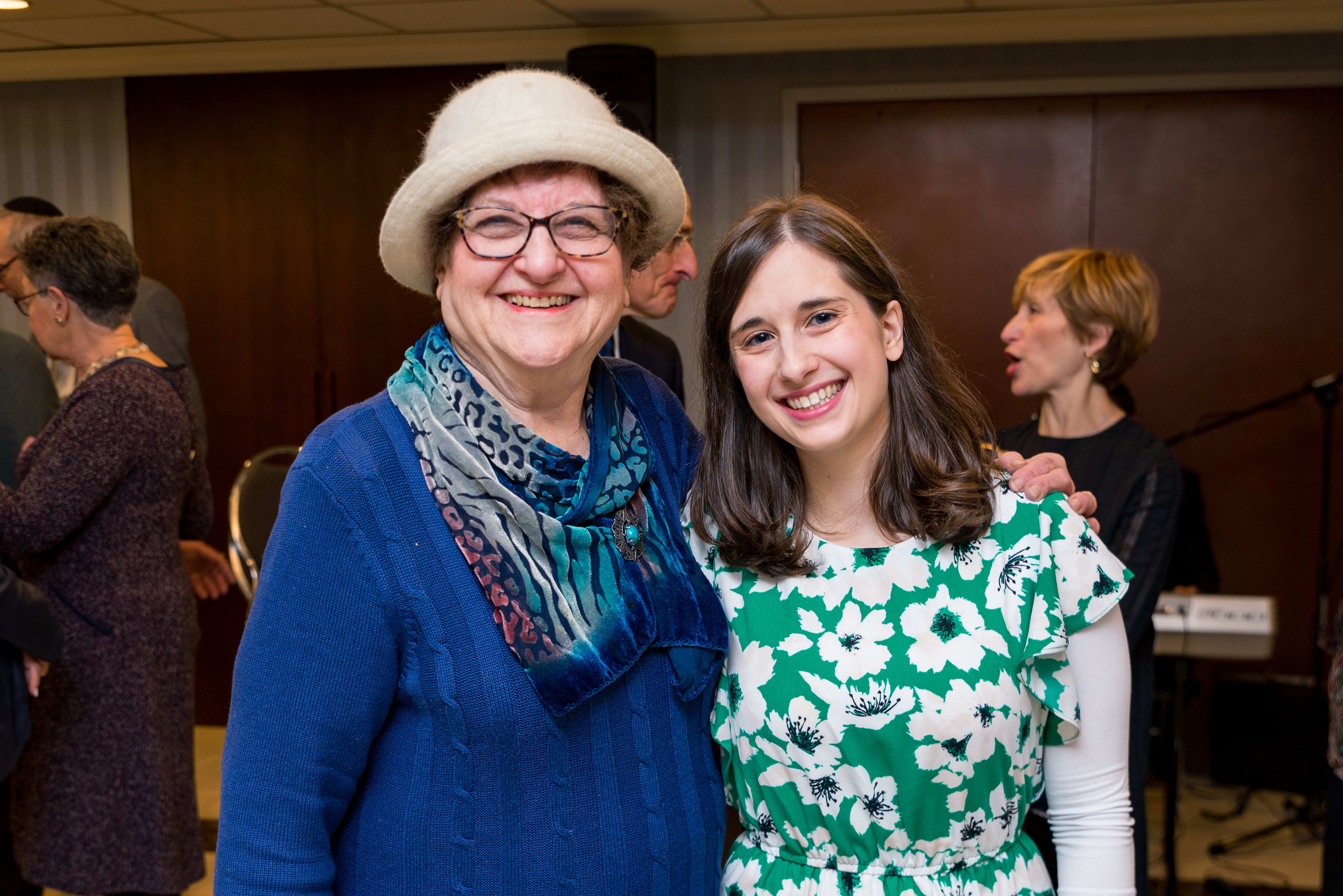 Mollie Fisch (left) and Lamdeinu program director Esti Mellul (Fisch’s granddaughter) attending a breakfast at Lamdeinu, a center for high-level, text-based Torah learning where Fisch learns every Monday. “Tanach,” says Fisch, “is my special love.” Courtesy of Mollie Fisch