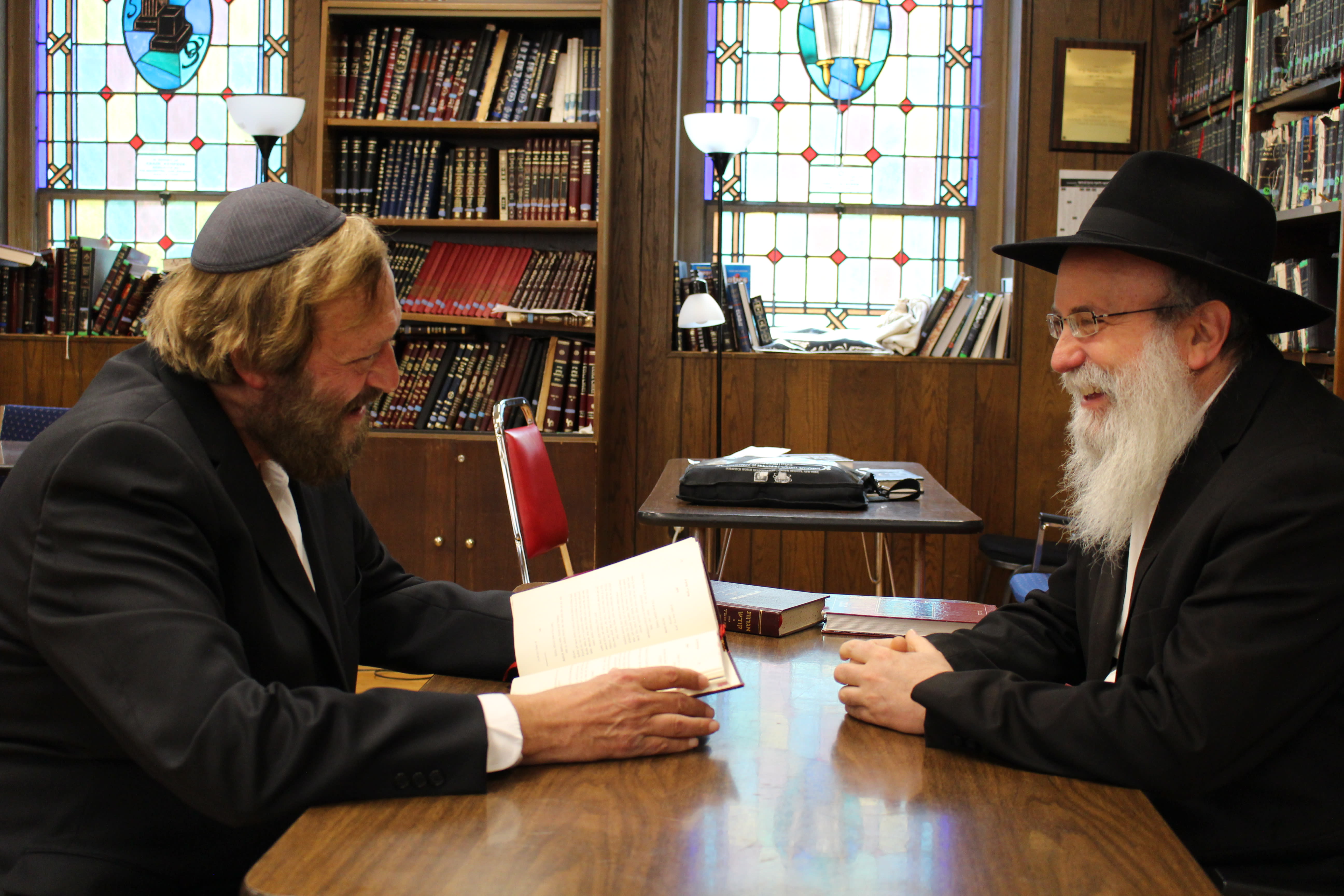 Simcha Goldstein enjoying a Torah discussion with Rabbi Chaim Brafman, maggid shiur of Yeshivas Tiferes Bachurim, a division of the Rabbinical College of America, based in Morristown, New Jersey. Courtesy of Simcha Goldstein