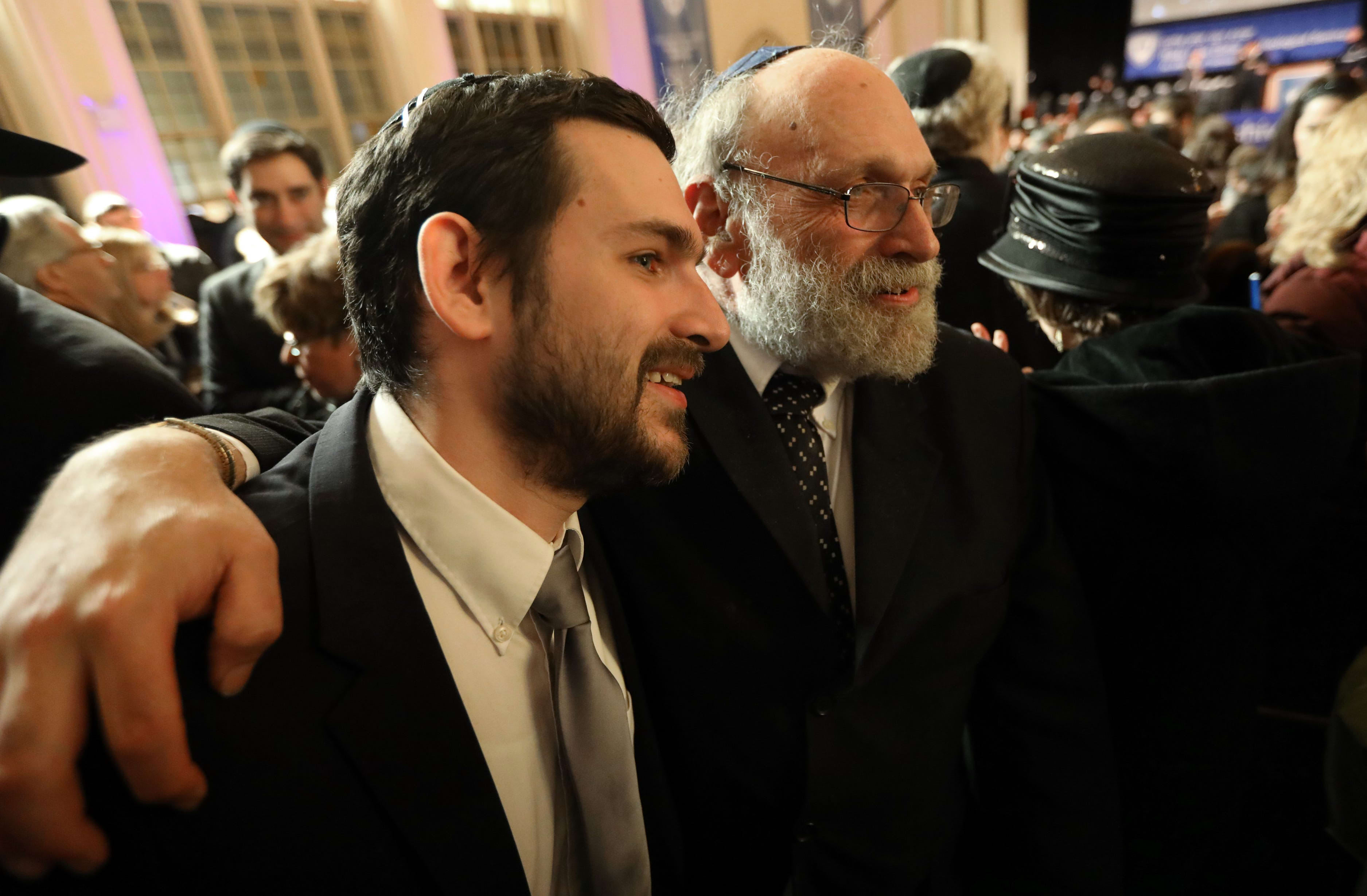 Rabbi Alvin Reinstein (left) and his son Sam receive semichah together at YU’s Chag HaSemikhah in 2017. According to YU records, the Reinsteins were the first father and son ever to be ordained by the school on the same day. Photo: Kevin R. Wexler/NorthJersey.com