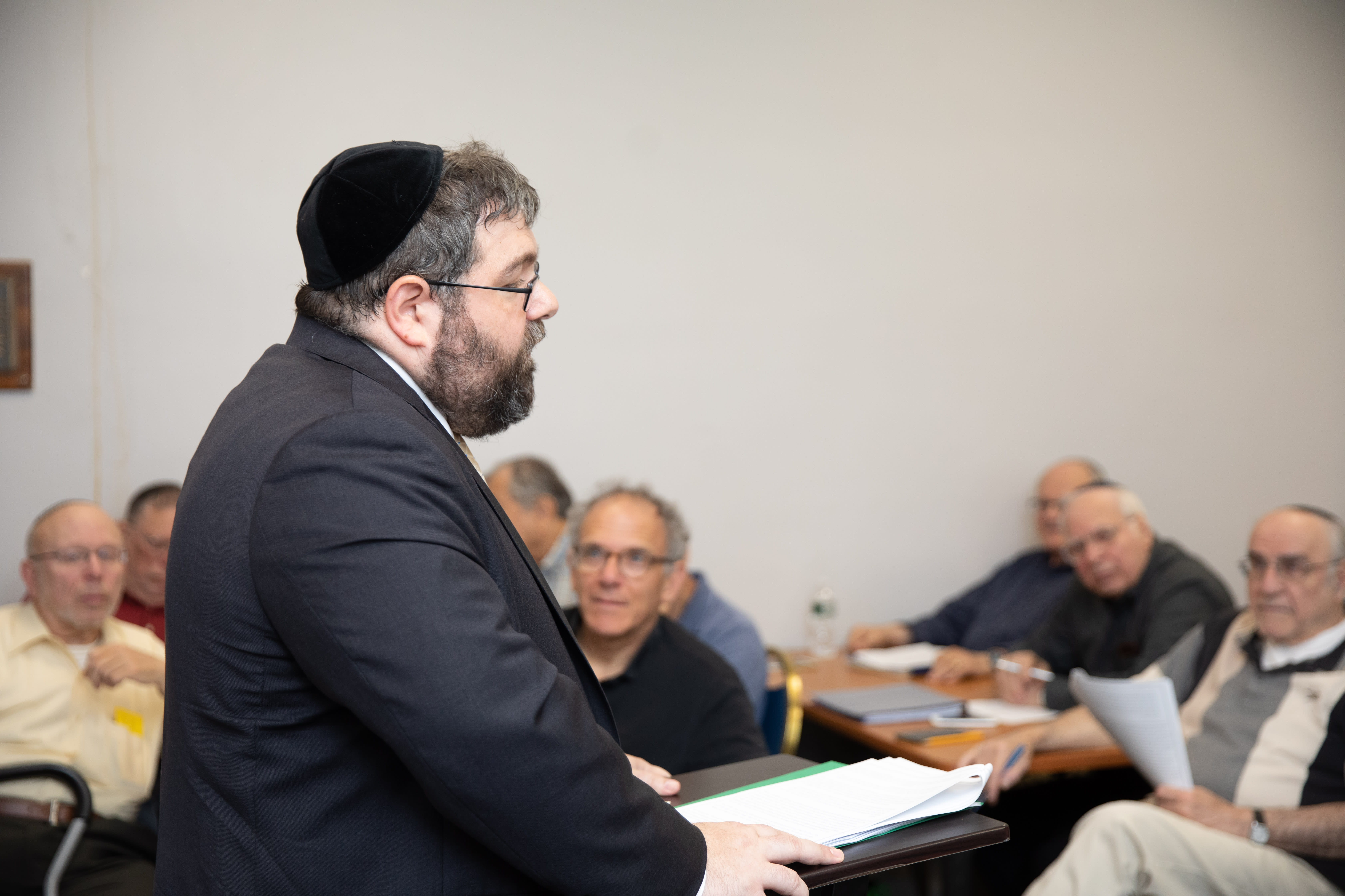 Rabbi Daniel Feldman, rav of Ohr Saadya in Teaneck, New Jersey, and rosh yeshivah at YU, giving a shiur at BMT. Photo: Abbie Sophia Photography