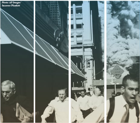 I saw women in business suits and high heels running south towards Bowling Green Park. Why are they running? I thought. Then I noticed some people crying. Someone near me said there was a plane crash at the World Trade Center. Someone else said that was the second plane. I figured I would go to my office and see if I could find information on the Internet.