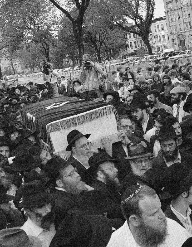 Hundreds gather in Crown Heights for the funeral of Yankel Rosenbaum, the twenty-nine-year-old rabbinical student who was stabbed to death during the Crown Heights Riots in August of 1991. Photo: AP Photo/David Burns