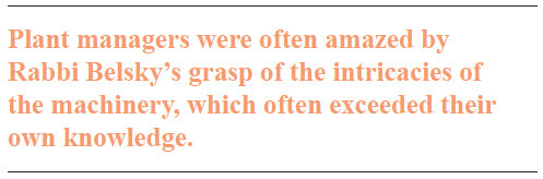 Rabbi Belsky’s vast scientific knowledge was often useful in analyzing halachic issues and was especially helpful concerning kashrut issues that OU Kosher had to deal with. Not only was his expertise in animal anatomy invaluable in determining difficult kashrut questions, but his technical skill and mechanical aptitude were critical in analyzing kashrut problems concerning the machinery and equipment used in plants that produce and process OU-certified products. Plant managers were often amazed by Rabbi Belsky’s grasp of the intricacies of the machinery, which often exceeded their own knowledge, and were also struck by his courteous and dignified demeanor. One non-Jewish plant manager sent the following message to the OU shortly after Rabbi Belsky’s petirah: “Just found out about his passing. He had a profound impact on me with his wisdom to analyze and solve problems. May his memory be eternal.”