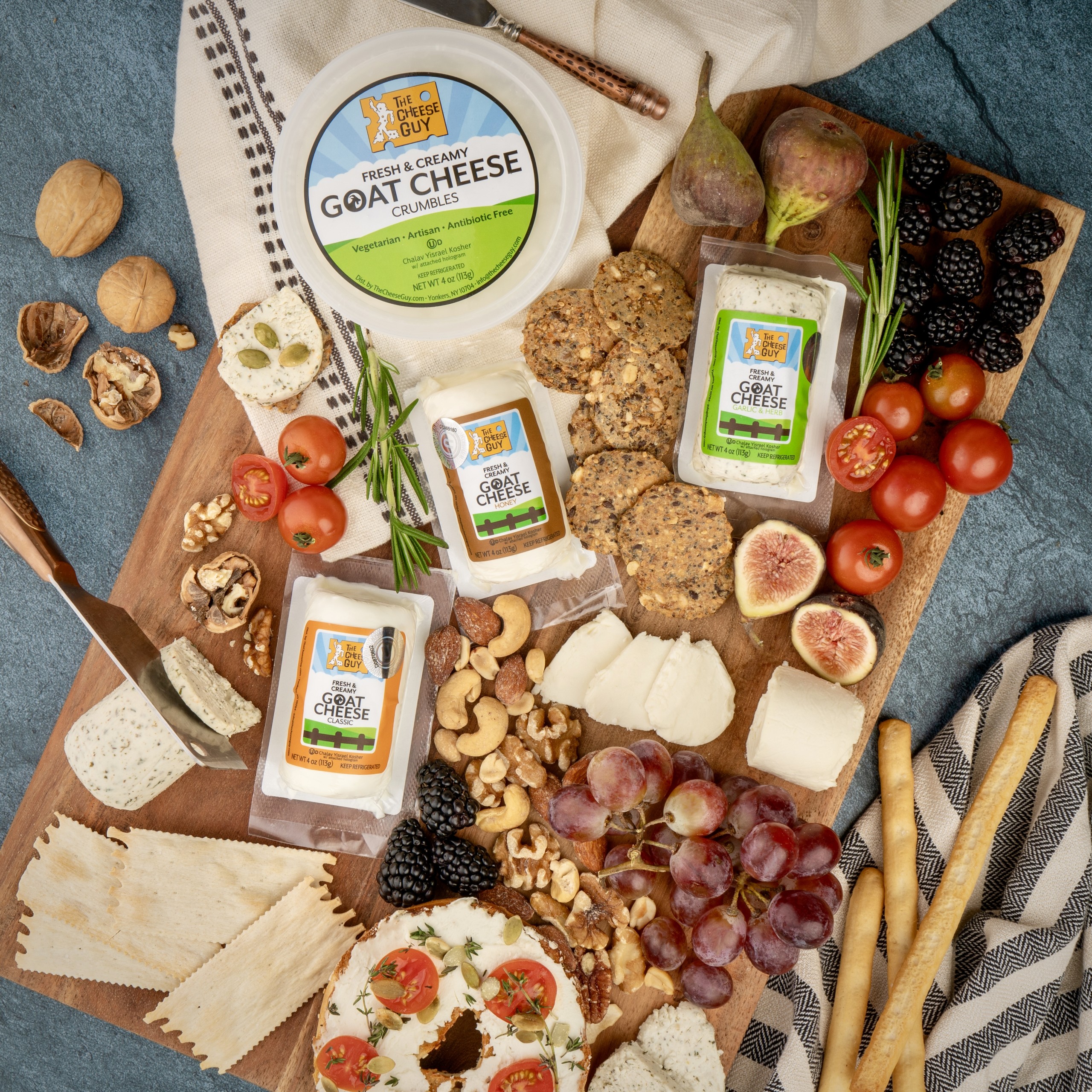 The Cheese Guy’s goat cheese collection—fresh, creamy and packed with flavor—presented alongside fruits, nuts and artisanal crackers.