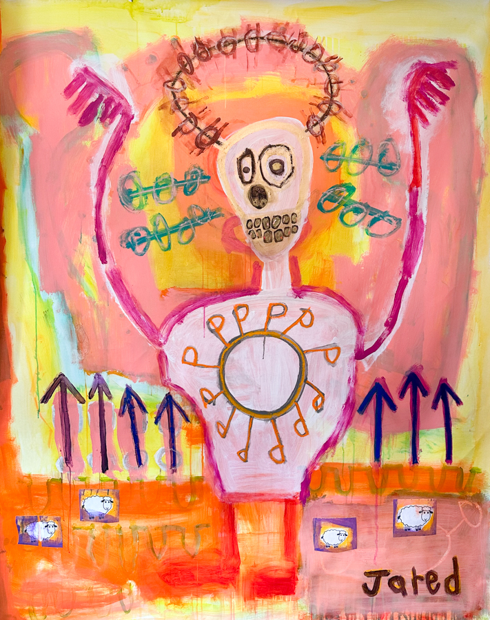 Poem by Jared Bernstein which accompanies his painting, “Optimistic Defeatist”: